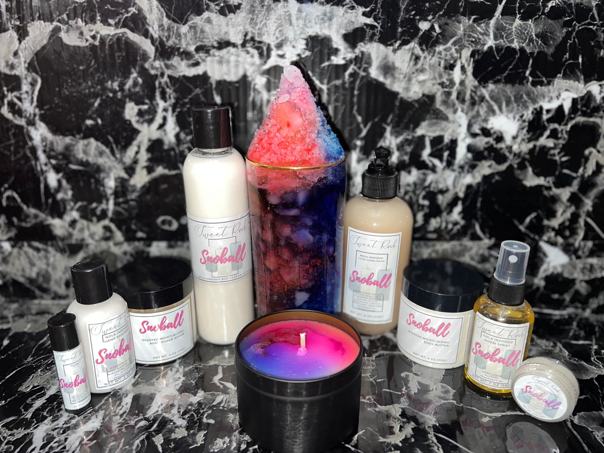 A Snoball is a fun, cold Louisiana dessert made of shaved ice and flavored syrup. This has inspired us to create a cotton candy scented candle.