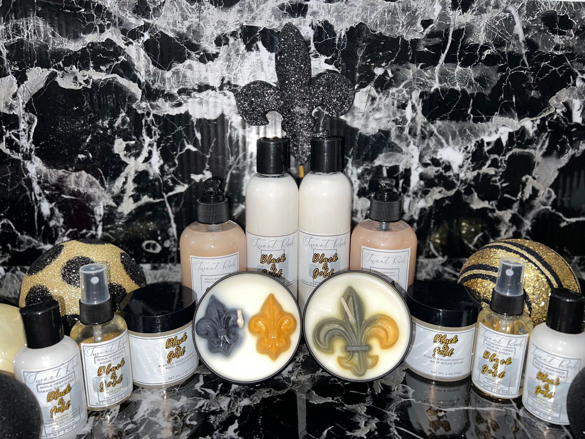 Black & Gold are two colors paired with a Fleur-de-lis is something that is sure to flood the city on a Sunday when the New Orleans Saints are set to play. These colors and symbol not only reflect our team pride, but the culture of our city as well. This has inspired us to create a scent, that is flashy, distinct, and unique. Black & Gold has notes of vanilla, tonka, cocoa, amber and tobacco.