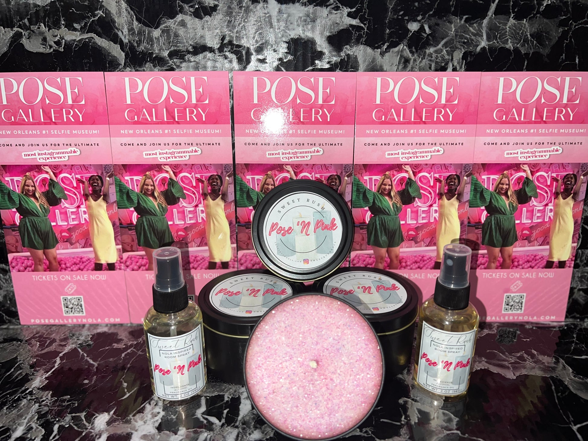 The Pose Gallery is New Orleans #1 Self-Museum and it is black-owned. In honor of the Pose Gallery, we have created a scent called Pose ‘N Pink. This scent is one of a kind, distinct, and ohh so good. It has notes of orange, caramel apple, vanilla, and musk.