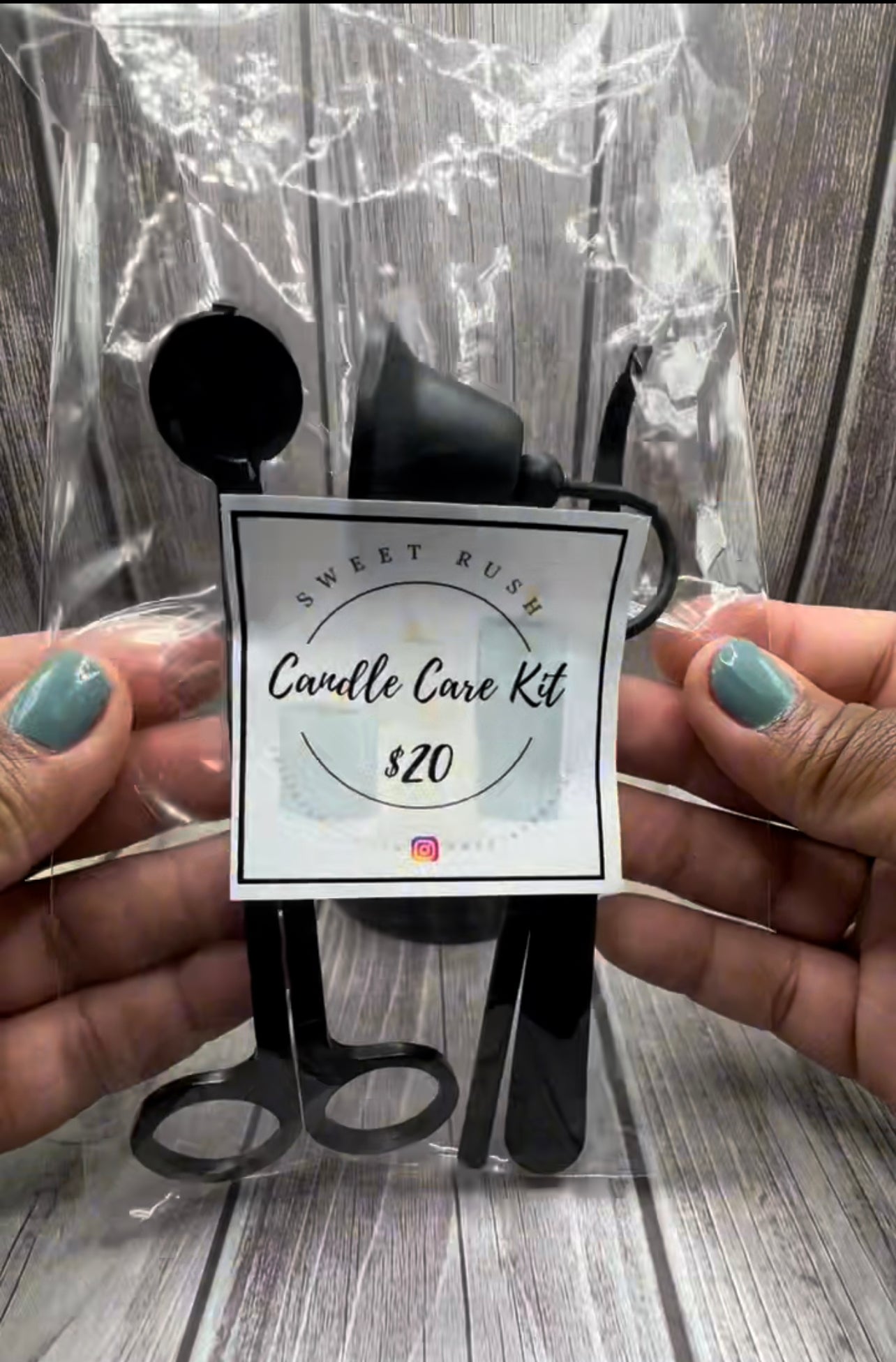 Treat your Sweet Rush candles with immaculate care, using our candle care kits. Our kits consists of a candle snuffer to extinguish the flame, a wick trimmer to trim the candle wick before each use, and a wick dipper that can be used to dip the wick in the wax to put out the flame or catch any debris inside the candle.